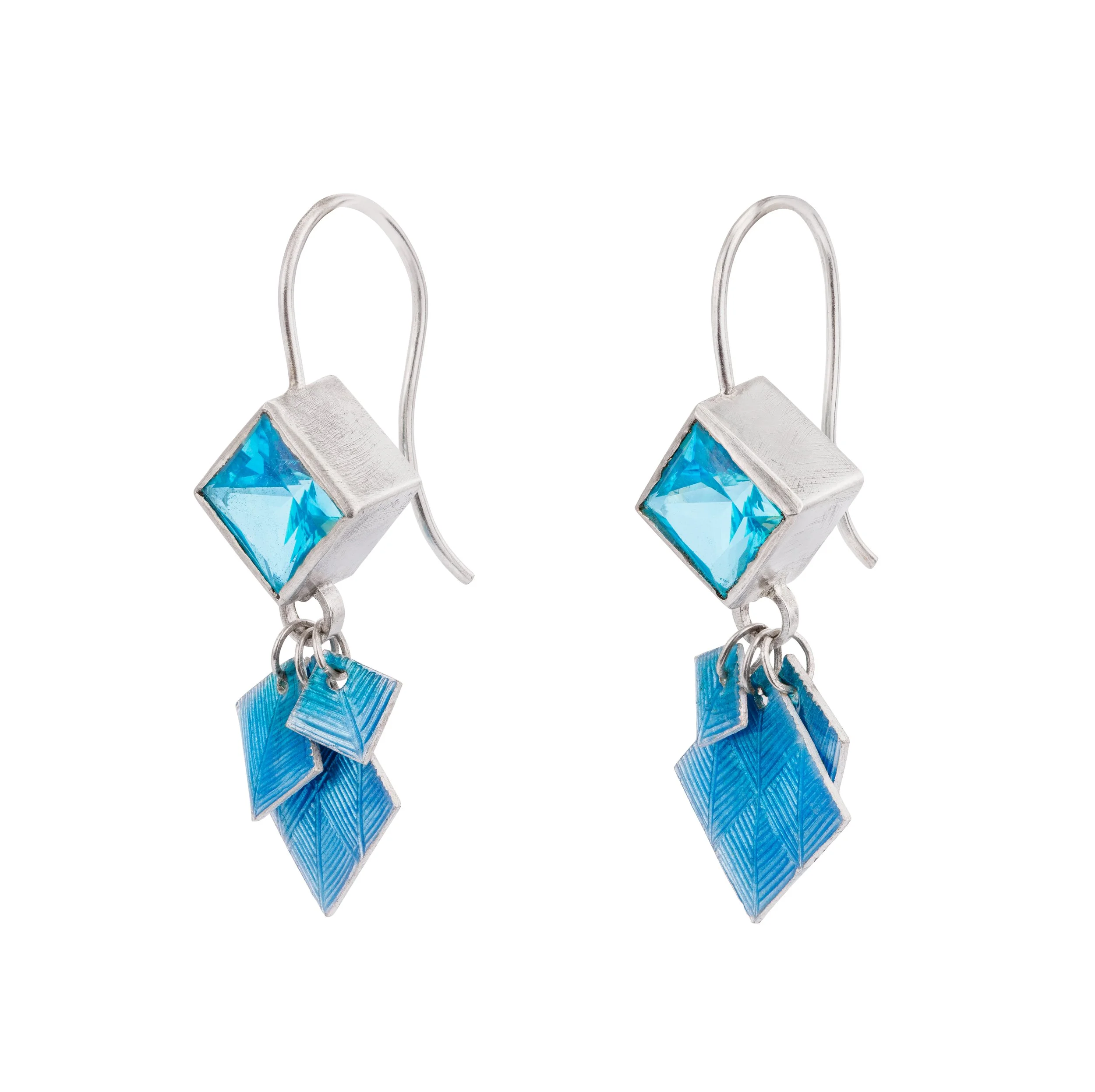 The inspiration for Charlotte’s intricate enamelled jewellery was initially sparked by the sequins on her daughter’s T-shirt, which caught her eye in an otherwise mundane moment when doing laundry. In replicating the tiny moving parts in silver and enamel, Charlotte has created a jewellery collection which is feminine, tactile and reminiscent of the heavily petalled dahlias in her garden. Each silver petal has been enamelled on both sides in a soft blue or white enamel and sewn into place to allow a subtle playful movement when touched. The edges of each petal have been painstakingly polished so the silver will catch the light, while embellishments of cultured freshwater pearls and recycled 9ct gold add lustre, texture and visual interest to each piece.