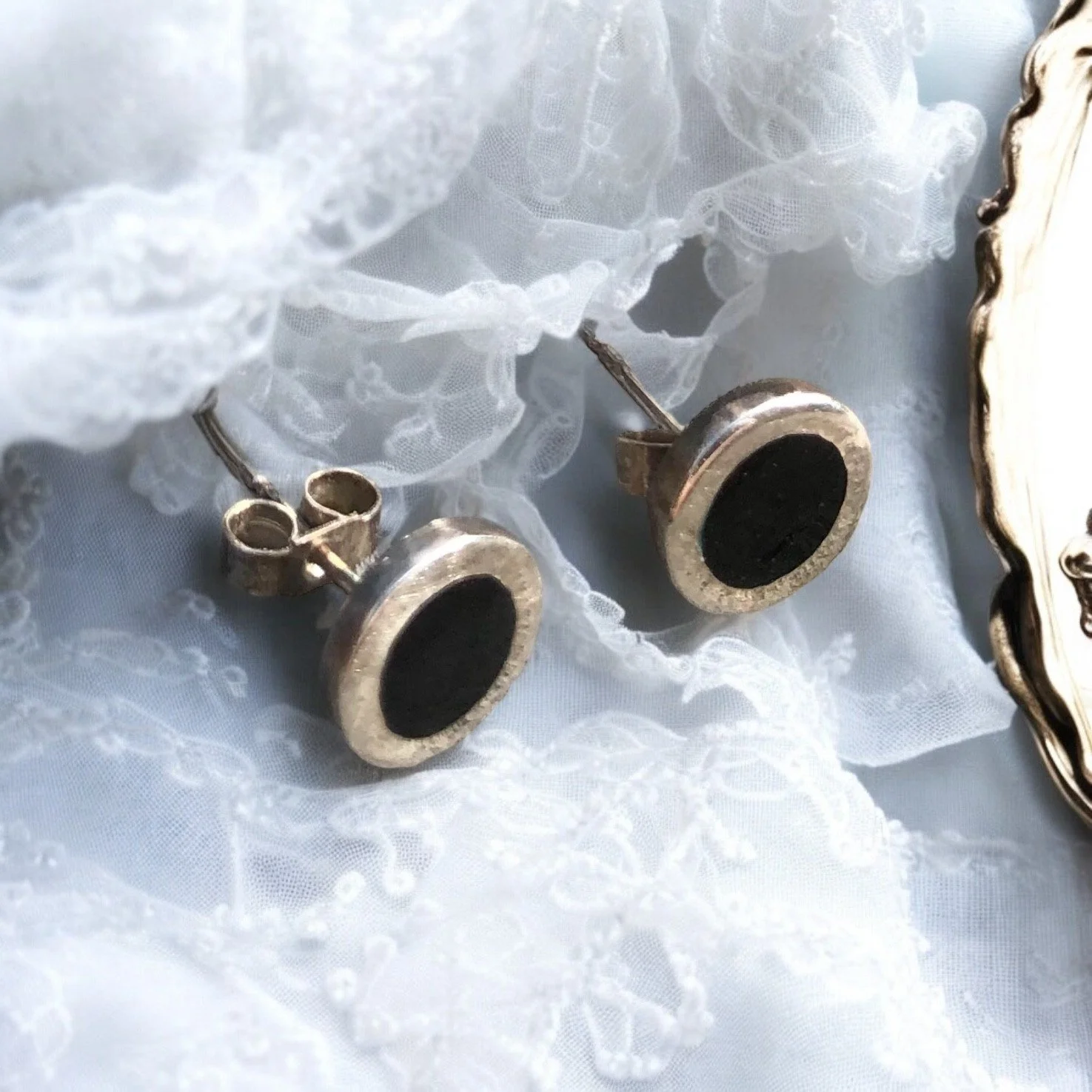 Circular Textures Earring Studs – Opaque Black Enamel in Circular Shape